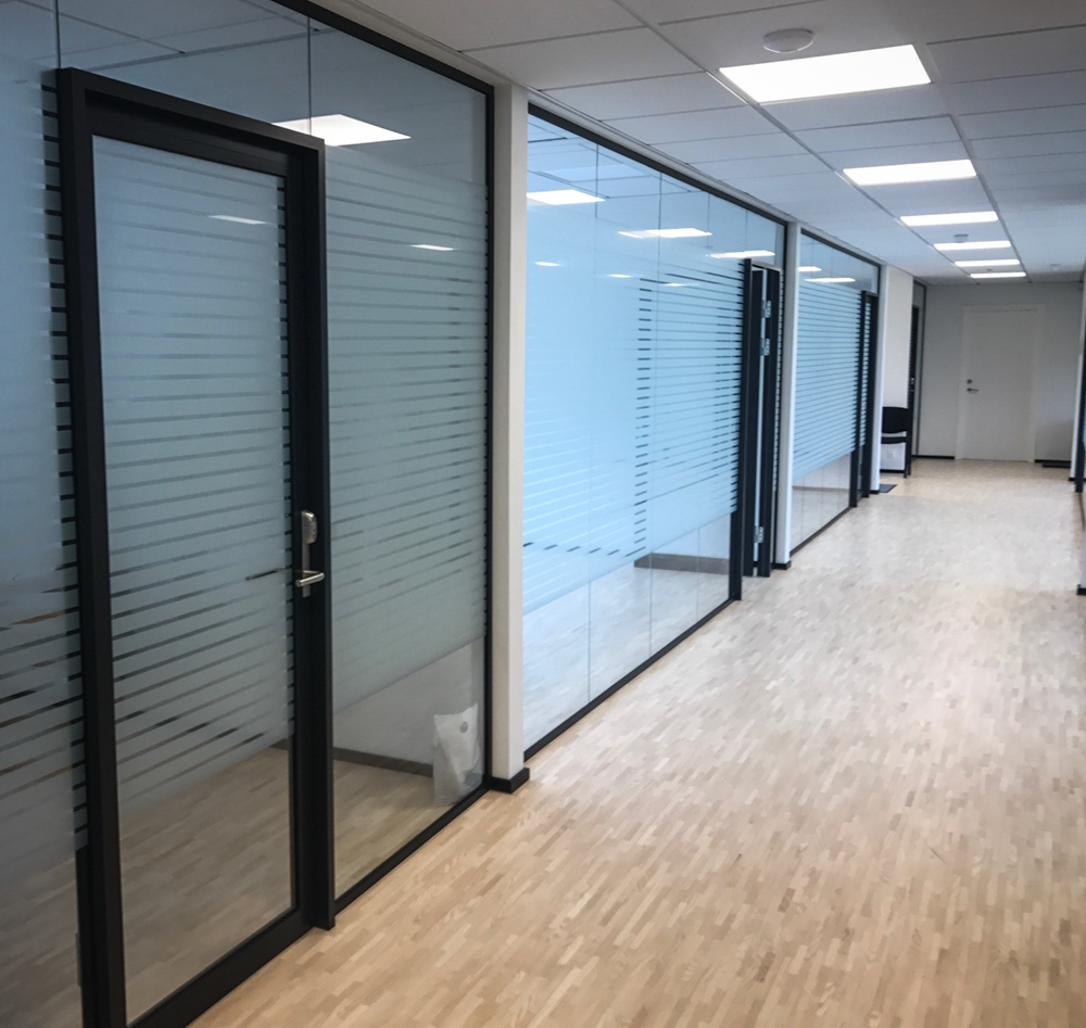 Indvendige glasvægge er uundværlige i et moderne kontorbyggeri, og skaber et lyst, luftigt og åbent arbejdsmiljø i alle kontorer, både i nybyg og ved ombygning af ældre byggeri. Med glasskillevægge bevares indtrykket af et åbent kontorlandskab, samtidig med at kontorer og mødelokaler skærmes mod støj.