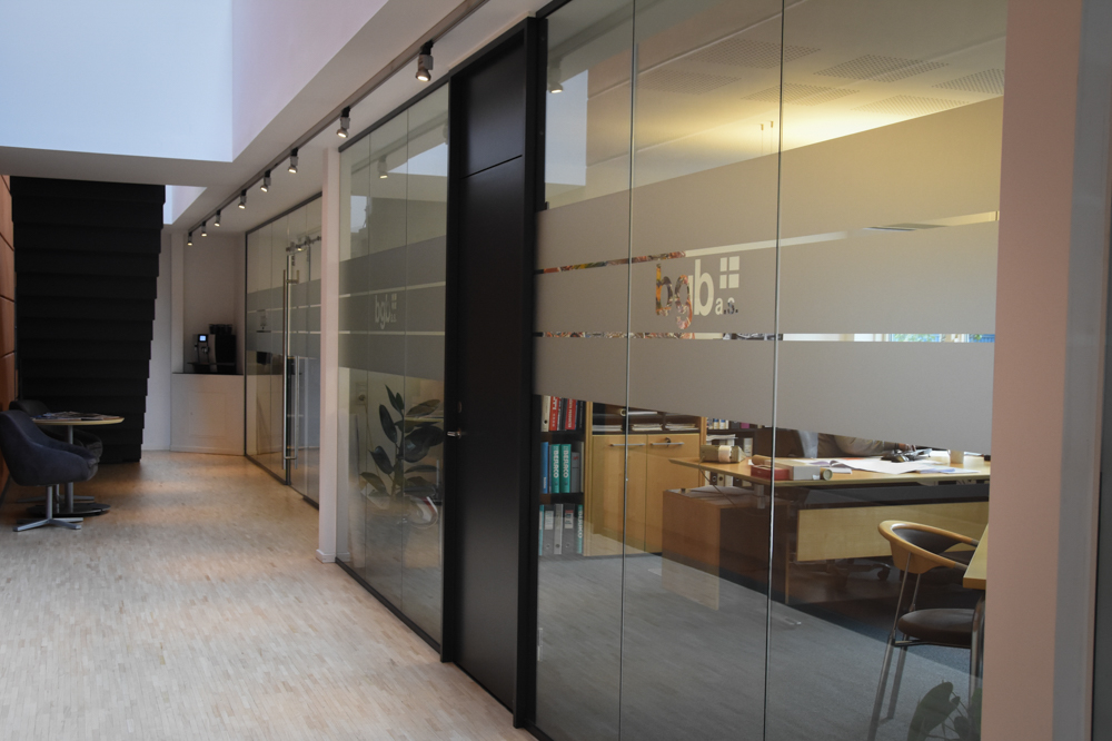 bgb design glasvægge er en fleksibel løsning til dit kontor. Vi har udviklet en metode til opsætning af glasvægge, som betyder, at vægge og døre nemt kan tages ned igen og monteres anderledes, hvis virksomheden får nye behov for adskillelse af arbejdspladser.