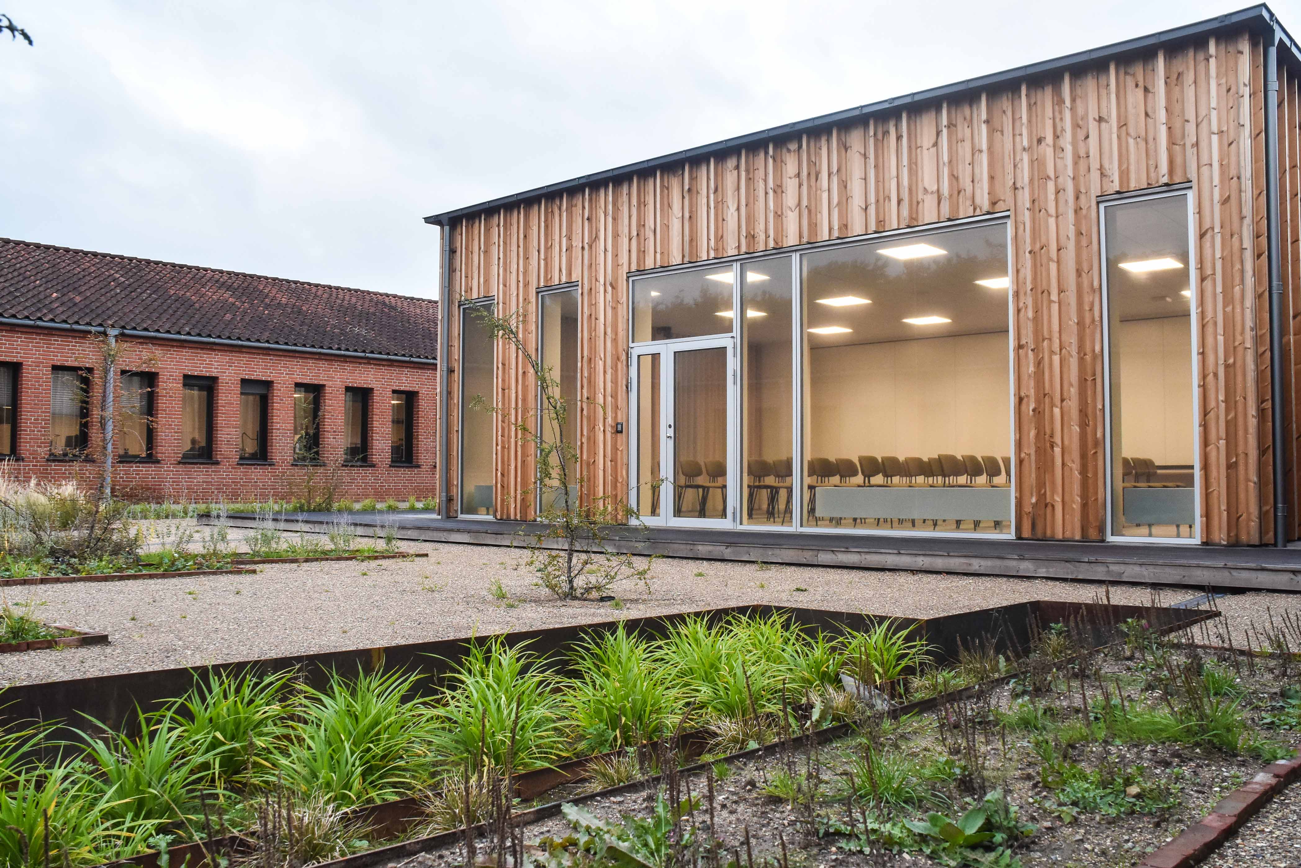 Udvidelsen består af fem tilbygninger i træ, placeret i ejendommens eksisterende gårdrum. Løsningen er udviklet i tæt samarbejde mellem ATP, totalrådgiver AI Arkitekter & Ingeniører og bgb a.s., som har været involveret fra projektets tidlige faser via en omvendt licitation. Den tidlige entreprenørinddragelse har været et godt grundlag for samarbejde og har betydet, at bgb a.s. fra start har kunnet bidrage med at finde de bedste løsninger og skabe et projekt med høj bygbarhed og høj kvalitet, der samtidig matcher
