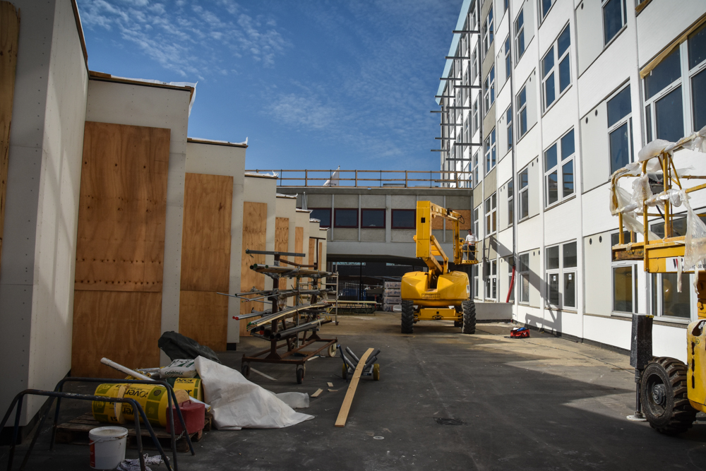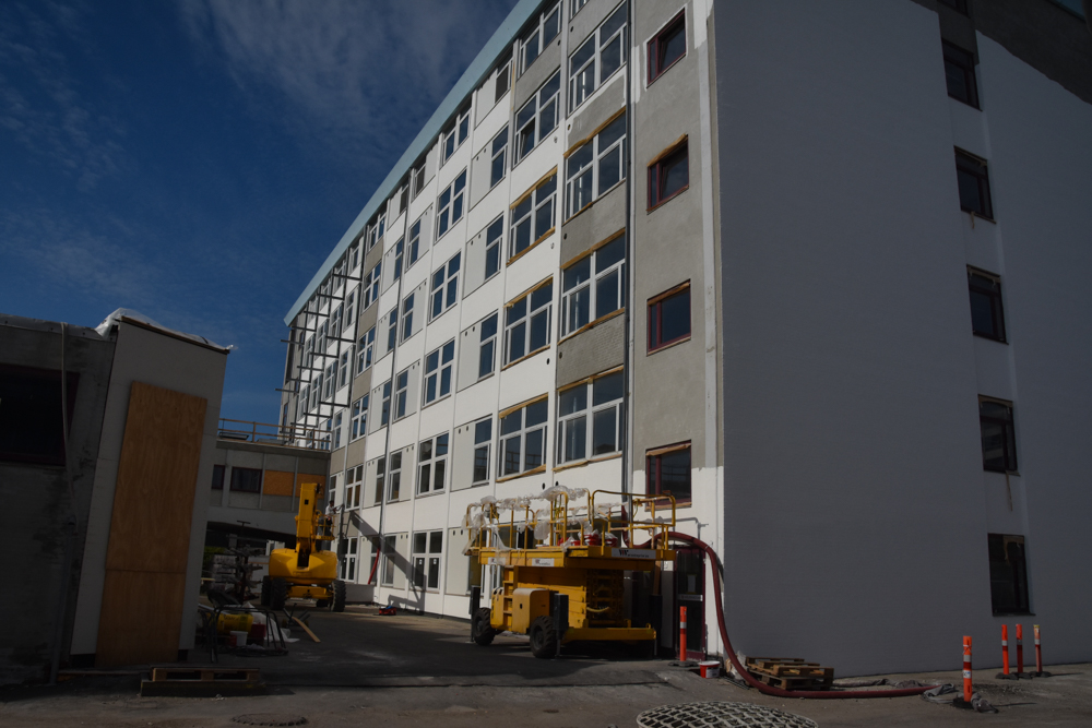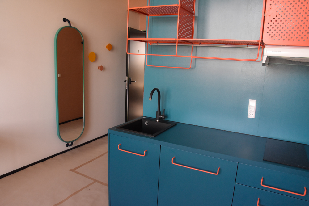 Vores entreprise rummede blandt andet facader, gipsvægge og indvending aptering. Værelserne er indrettet med indbyggede møbler og små køkkener, som er monteret af bygherre.