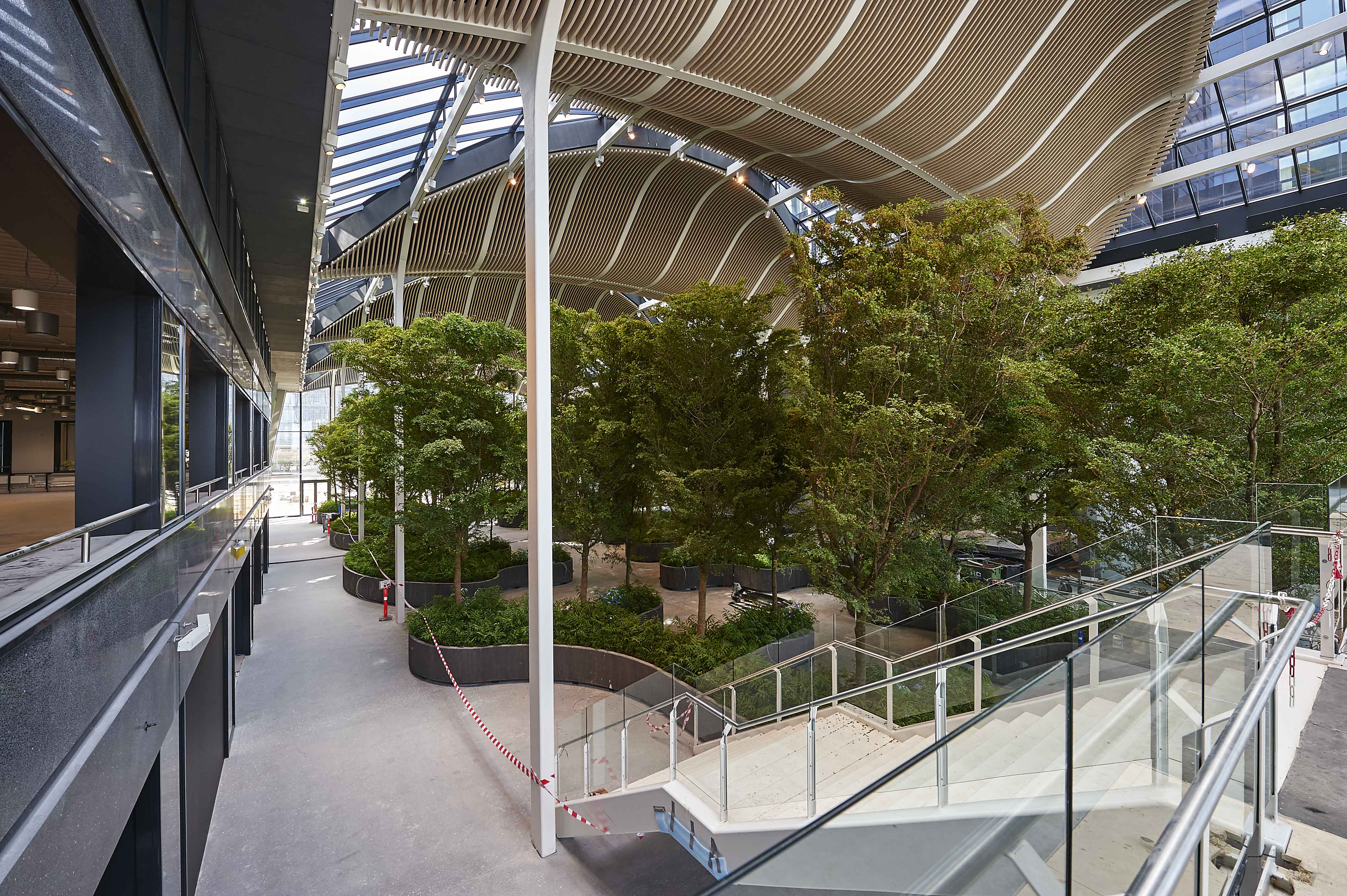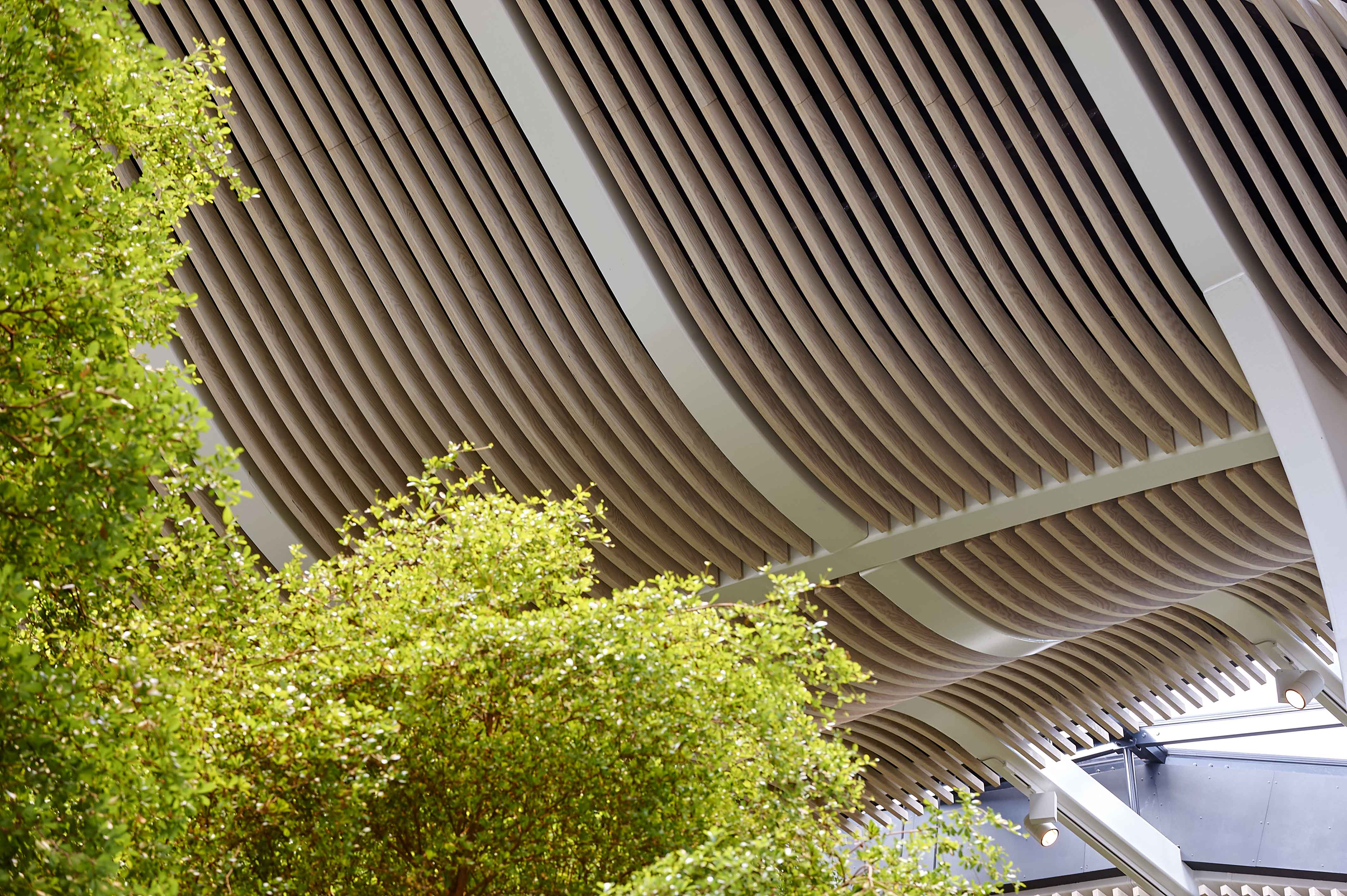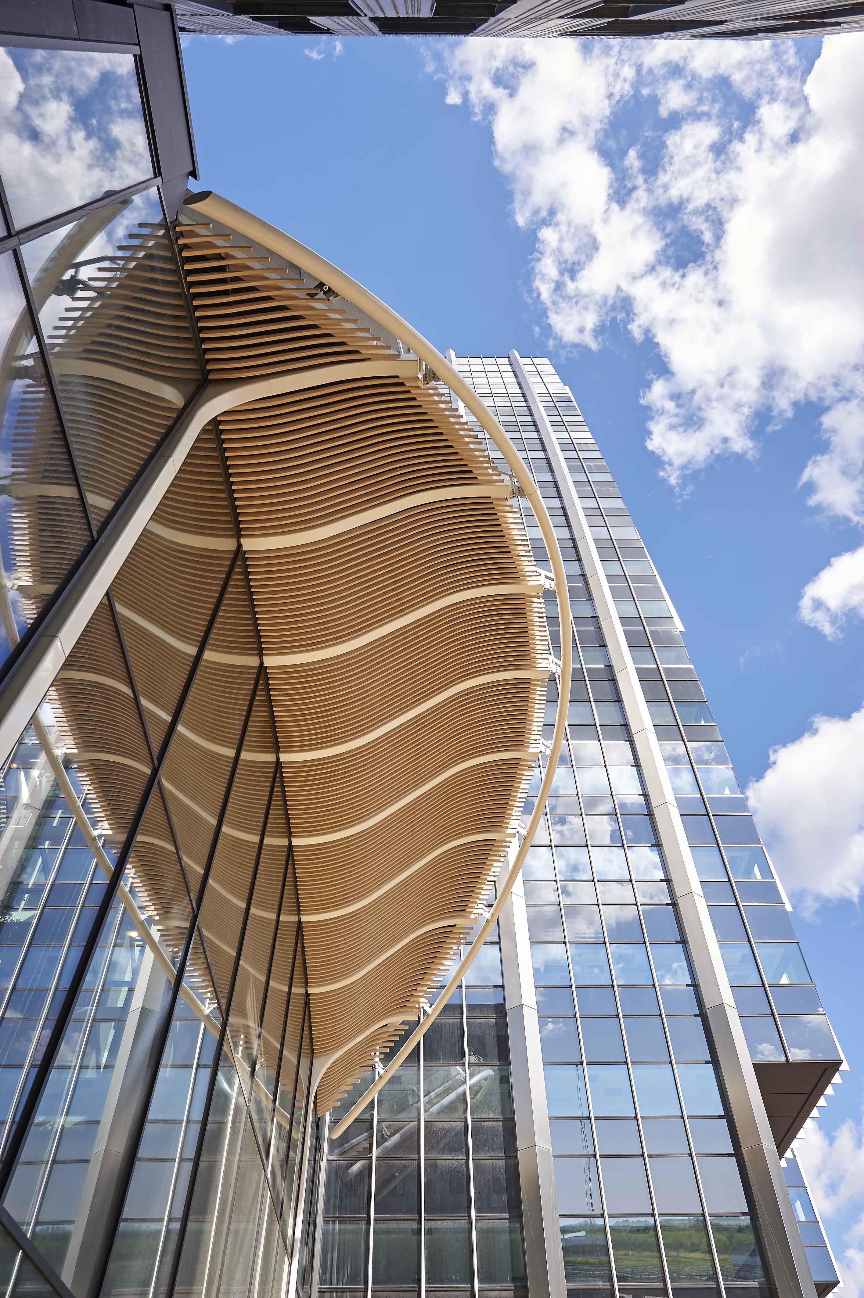 Loftet i Copenhagen Towers Centre Court er en unik konstruktion, som er tegnet af arkitekfirmaet Foster + Partners. Selve udformingen og monteringen af loftet er udviklet i et samarbejde mellem bgb a.s, Fosters arkitekt og Moelven, som har leveret de udfræsede lameller til loftet.