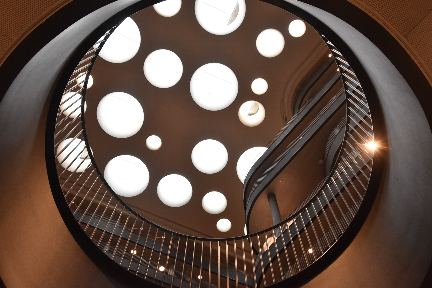 Til dagligt kan der være 5150 personer til stede i domicilet, der indeholder arbejdspladser, mødefaciliteter, galleri, flere caféer, med videre.