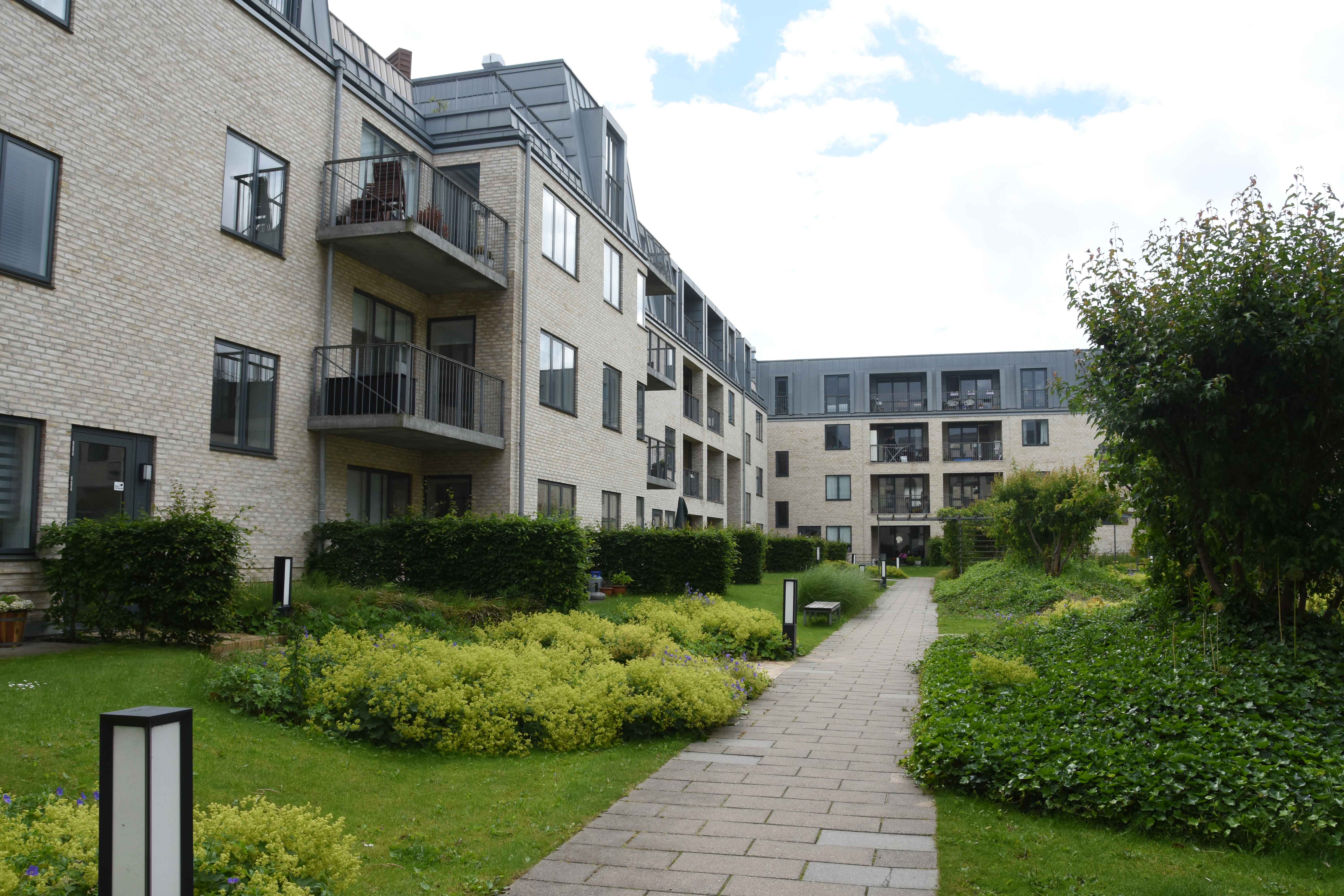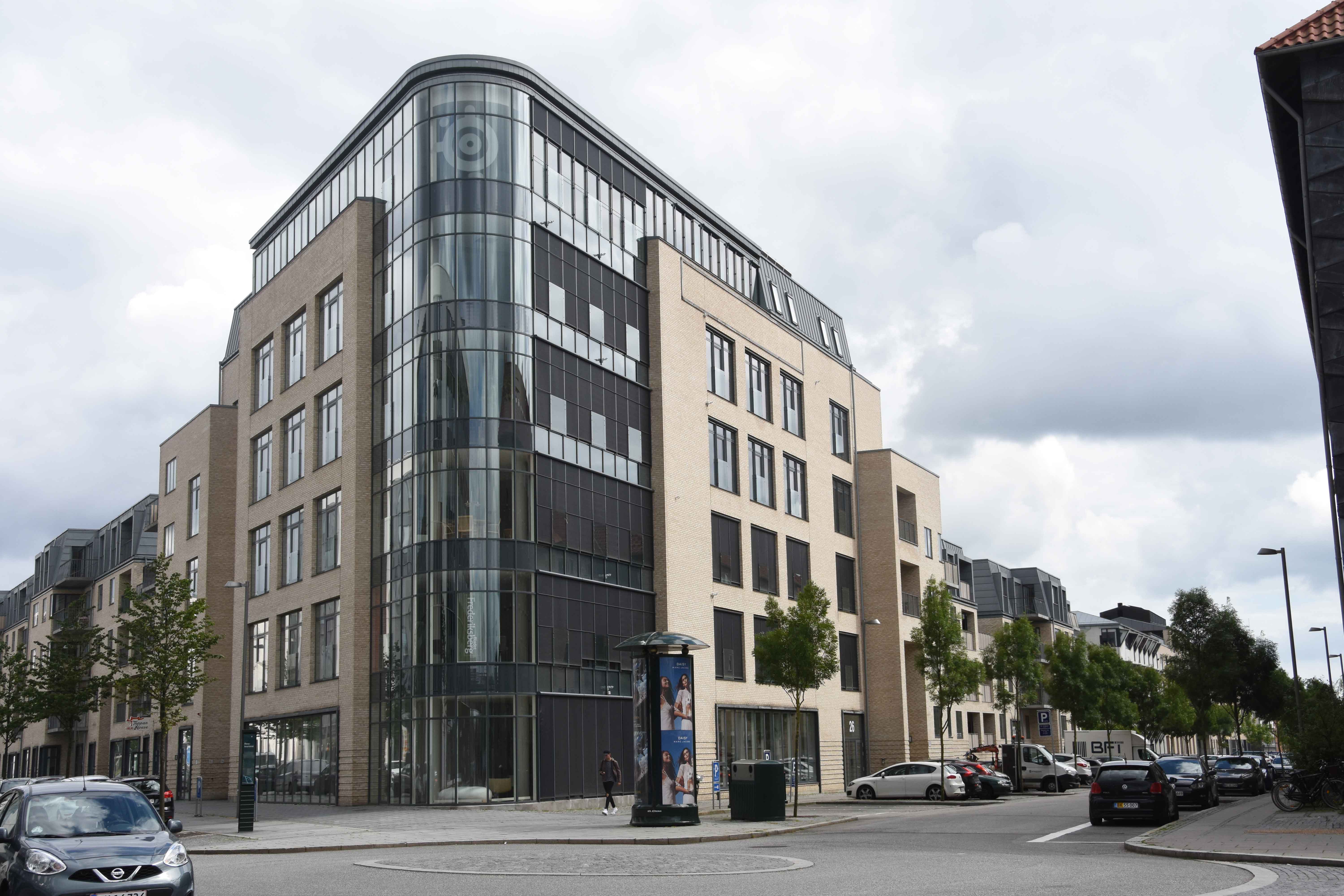 Kontorbygningen, som indgår som en del af boligkarréen, er et specielt byggeri med et rundet glasparti i alle seks etager. En udfordrende opgave for bgb a.s., som også havde denne glasfacade som en del af entreprisen.