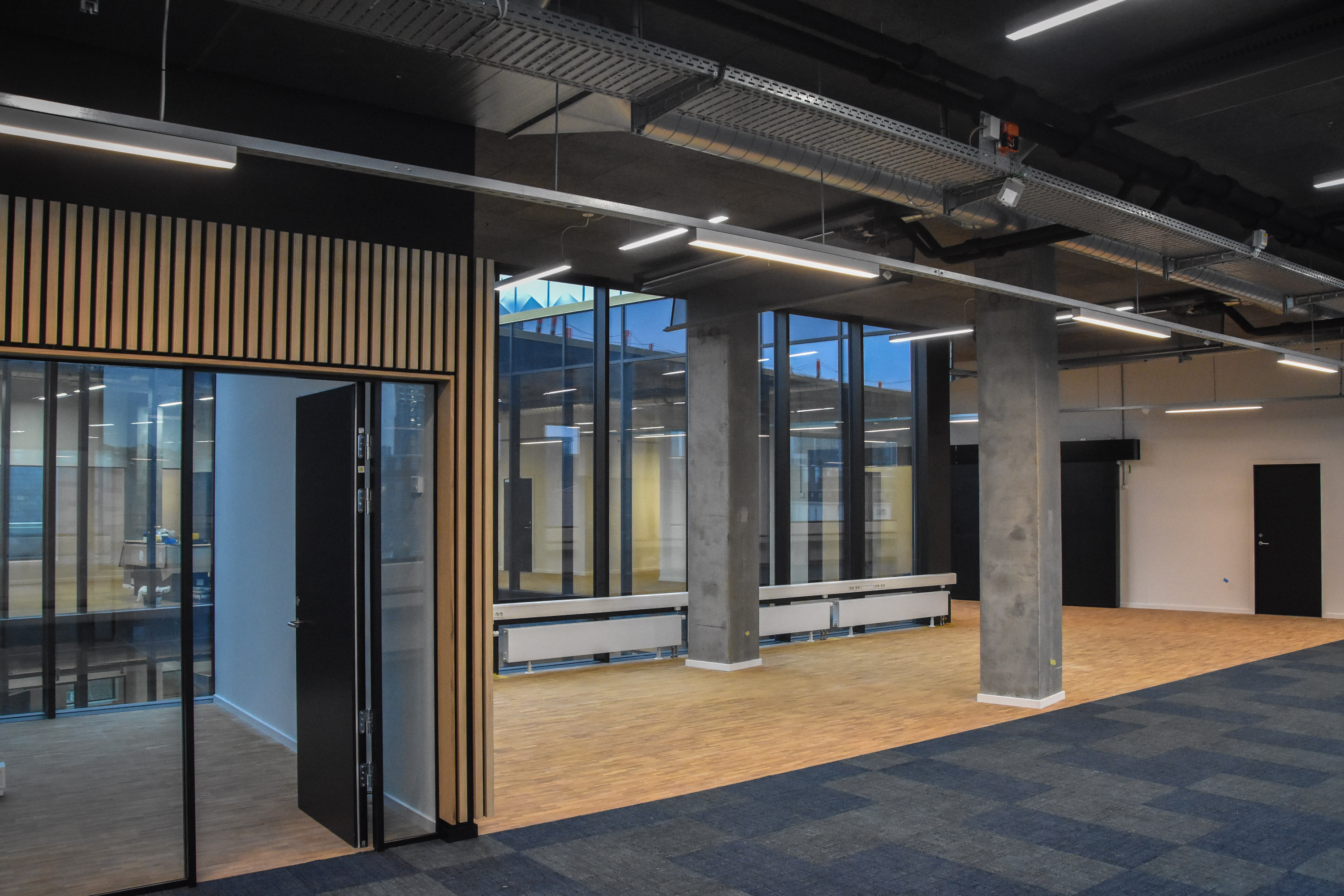 Til EC Hansen Hus har bgb a.s. leveret 12,76 mm hærdet og lamineret floatglas til glasvægge overalt i kontorhuset. I stueetagen har glasvæggene en højde på 2500 mm, og til kontorpavillonerne på etagerne har vi leveret glas i en højde på 2200 mm.