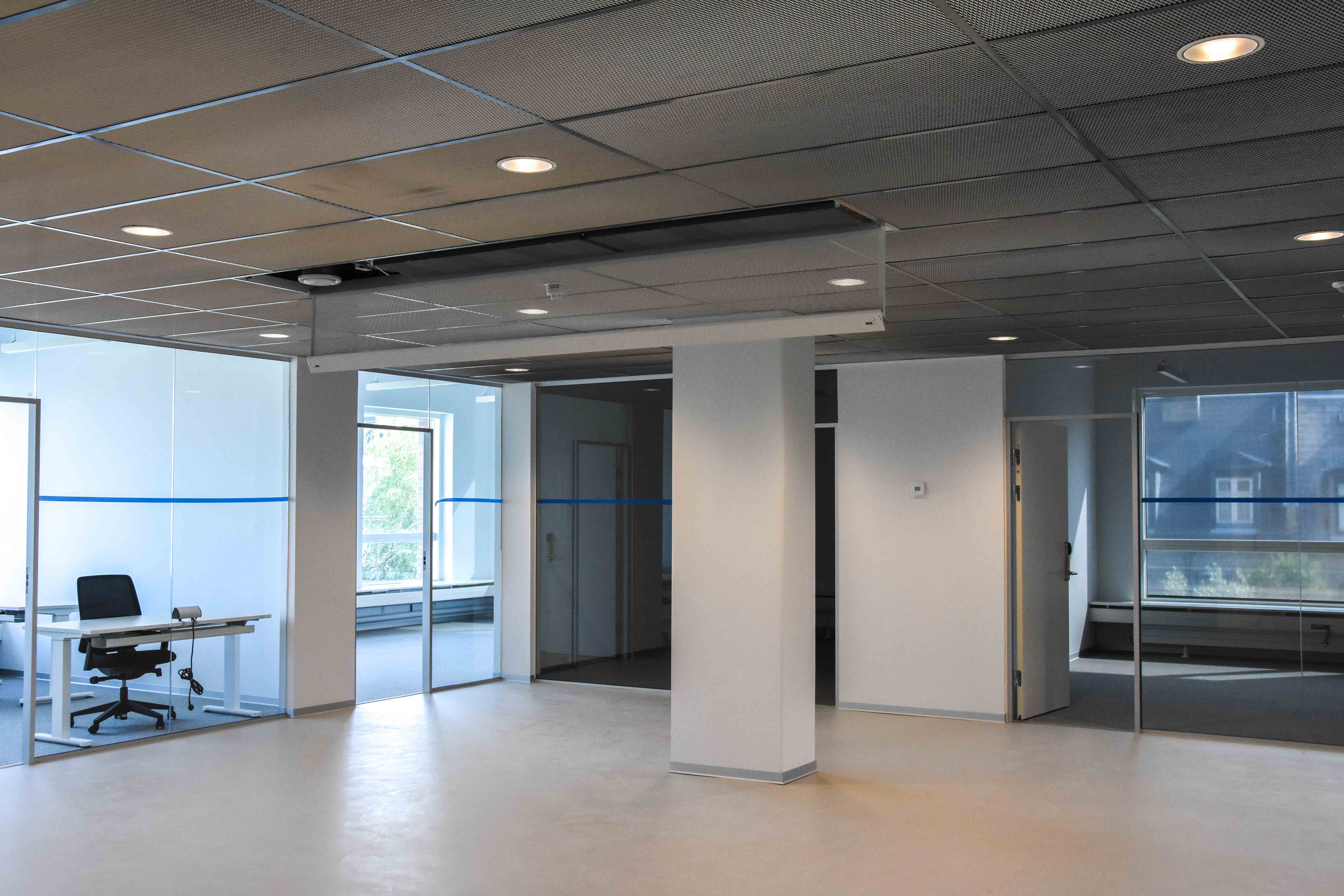 I erhvervsdelen, som består af kontorlokaler, har bgb a.s. opsat de indvendige gipsvægge, bgb design glasvægge, træbetonlofter og strækmetallofter. I ejendommens kælder og ved nedkørsel til parkeringskælder har bgb a.s. desuden monteret Steni facadeplader.