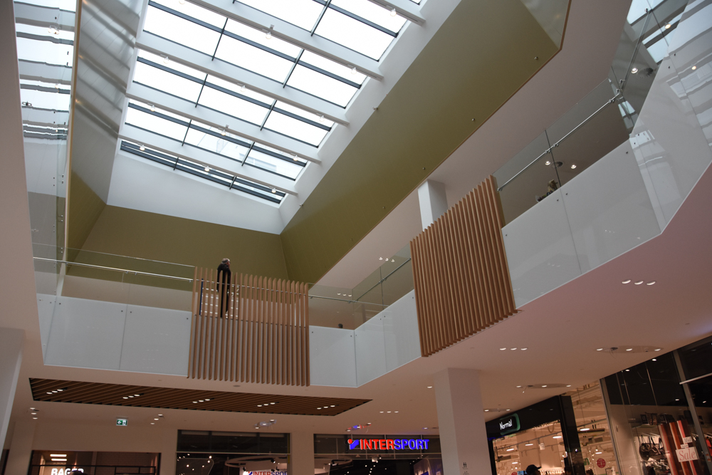 Ovenlysene er etableret med stålkonstruktioner, der holder de store ovenlys og lette facader. Det største ovenlysvindue i centerets centrale rum er 400 m² stort.