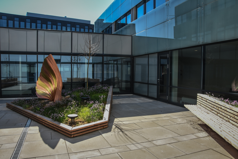 Udover totalrenoveringen af det indvendige af ejendommen, er ejendommens omgivelser også forbedret. En jordvold foran parterrens vinduer er rykket længere væk for at sikre mere luft og lys i kantinen. Der er etableret nye parkeringspladser og et nyt grønt miljø med stisystemer. Indgangsområdet til ejendommen har fået ny flisebelægning og store højbede.