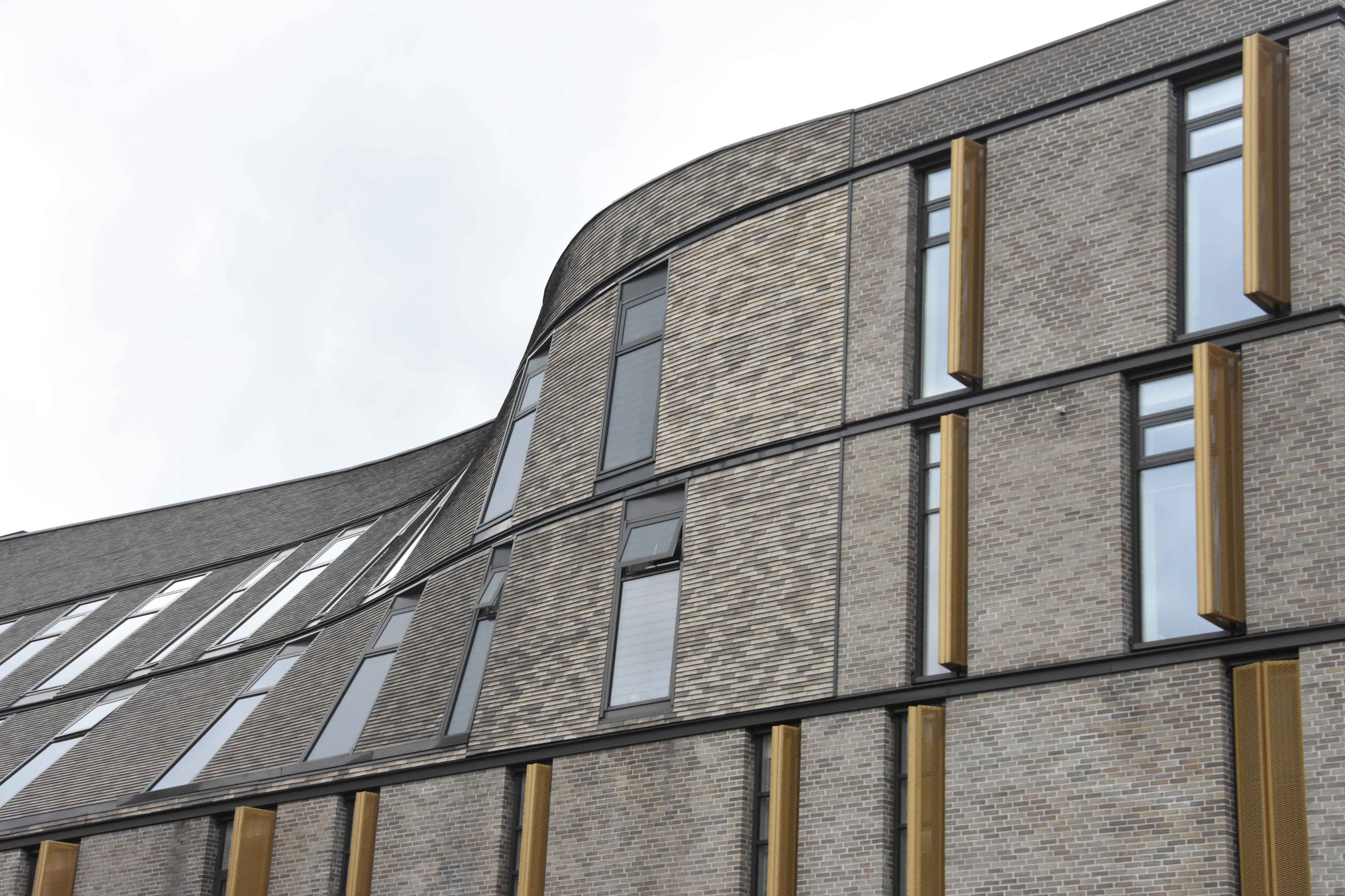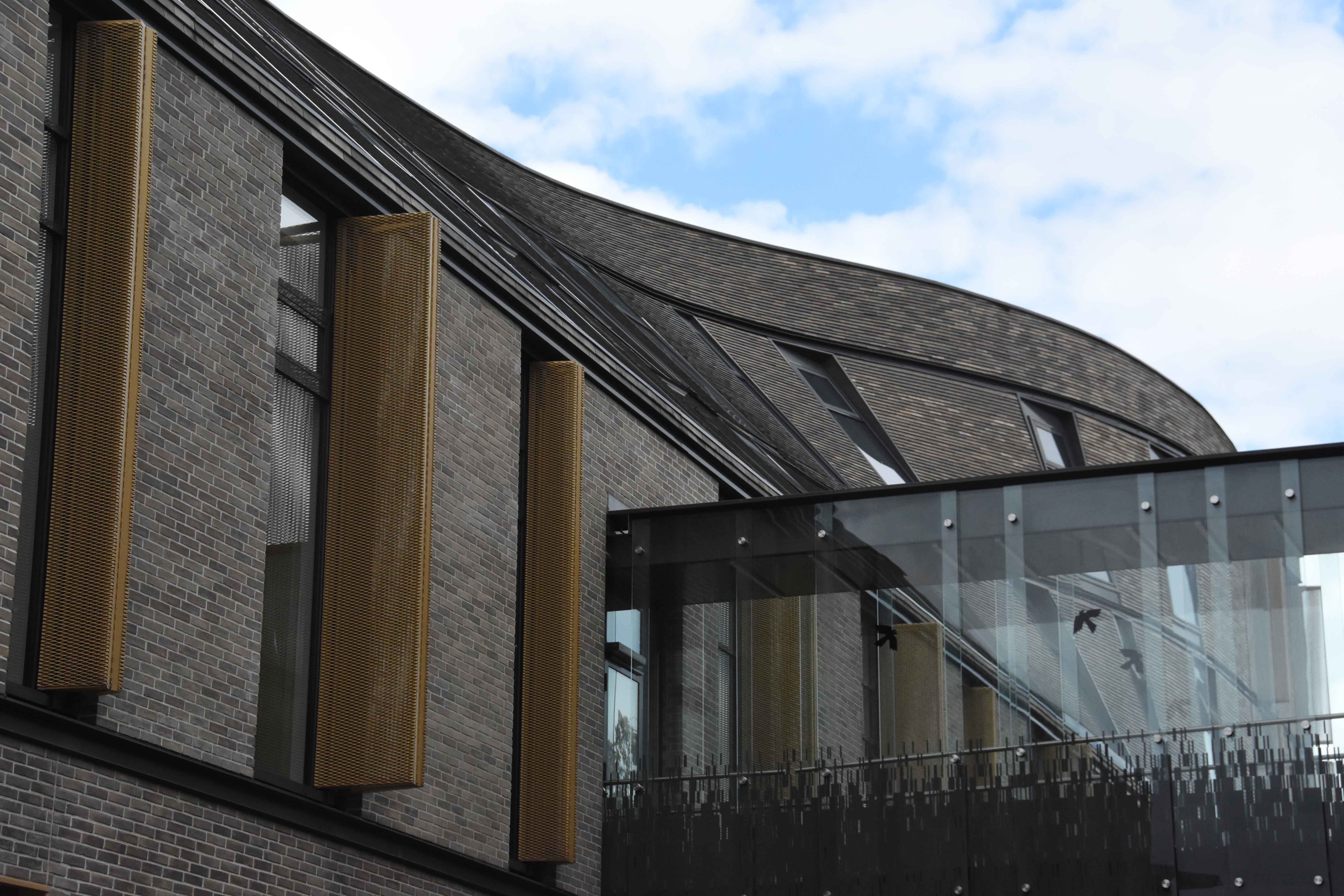 En del af opgaven var konstruktionen af bygningens tag, en udfordrende opgave, da konstruktionen drejer sådan, at taget har en hældning på 45 grader i den ene side, stigende til lodret i den anden side.