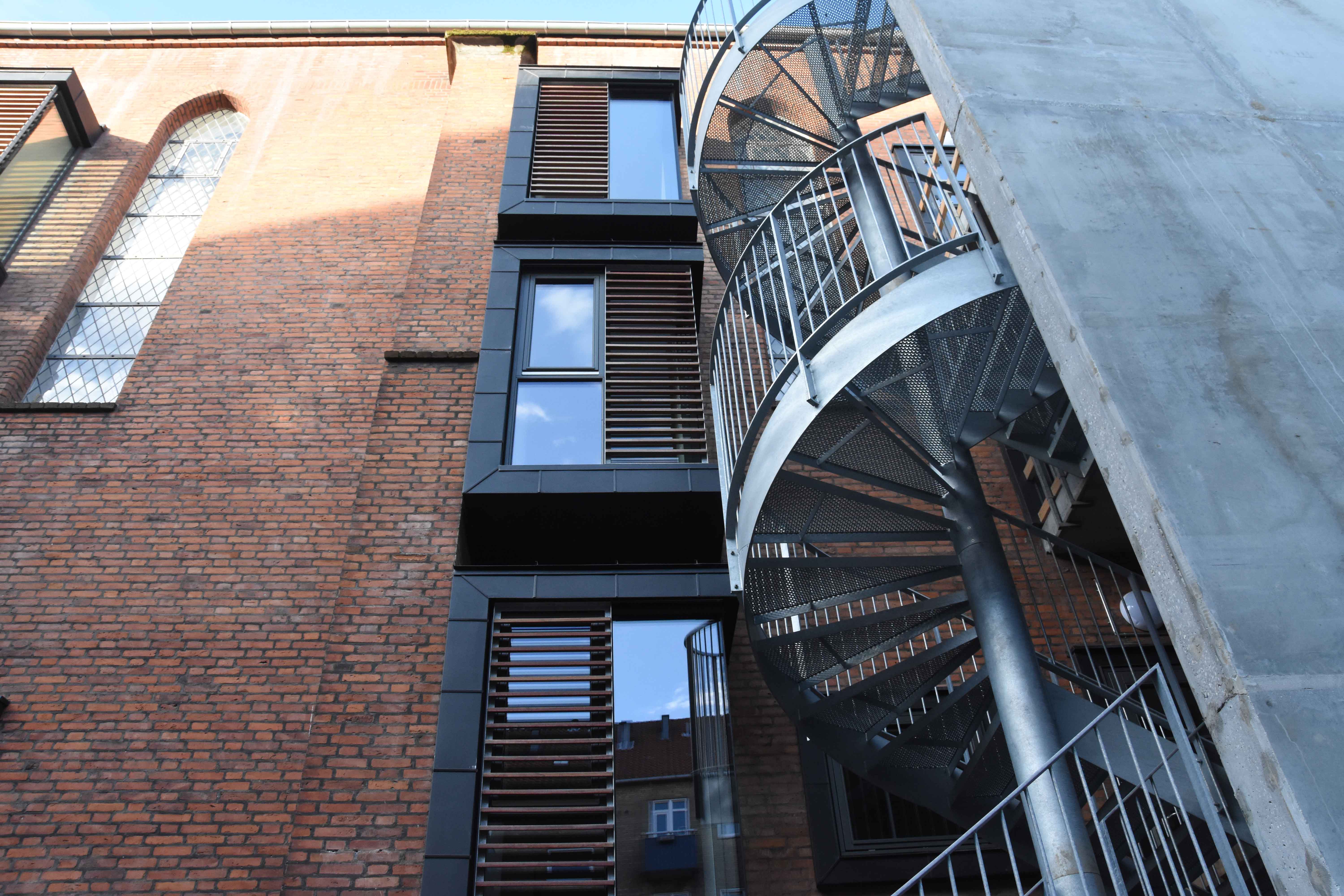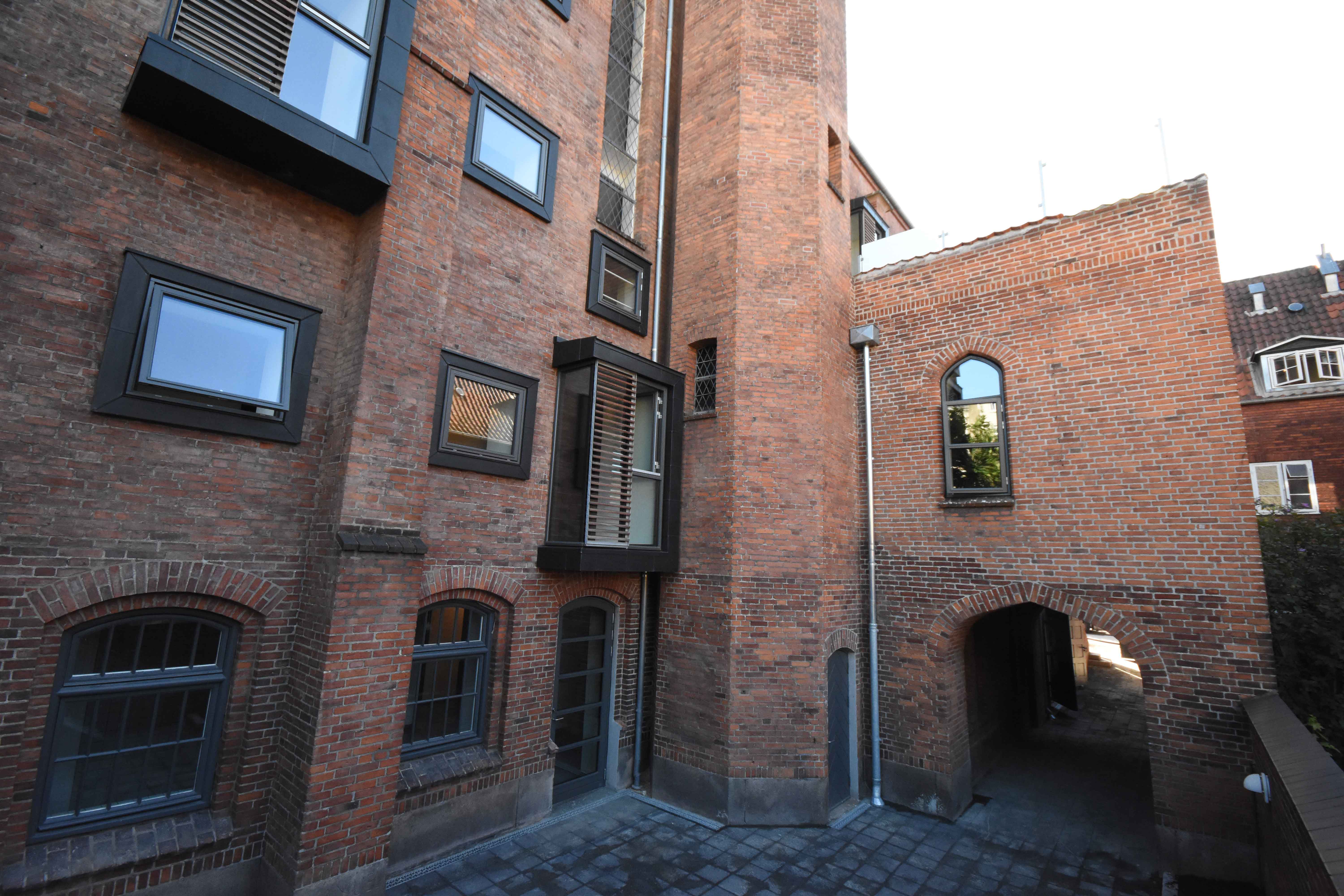 Store dele af den gamle kirke er bevaret, og kigger man ind i ejendommen, er man ikke i tvivl om, at bygningen oprindeligt var en kirke. Fra husets trapperum kan man se hele vejen op til taget, og kirkens store, runde facadevindue er bevaret i fælleslokalet. I det tidligere kirkeskib er de høje, slanke kirkevinduer bevaret, men for at få mere lys ind i boligerne er der lavet nye huller i kirkens facade og sat karnapper i.