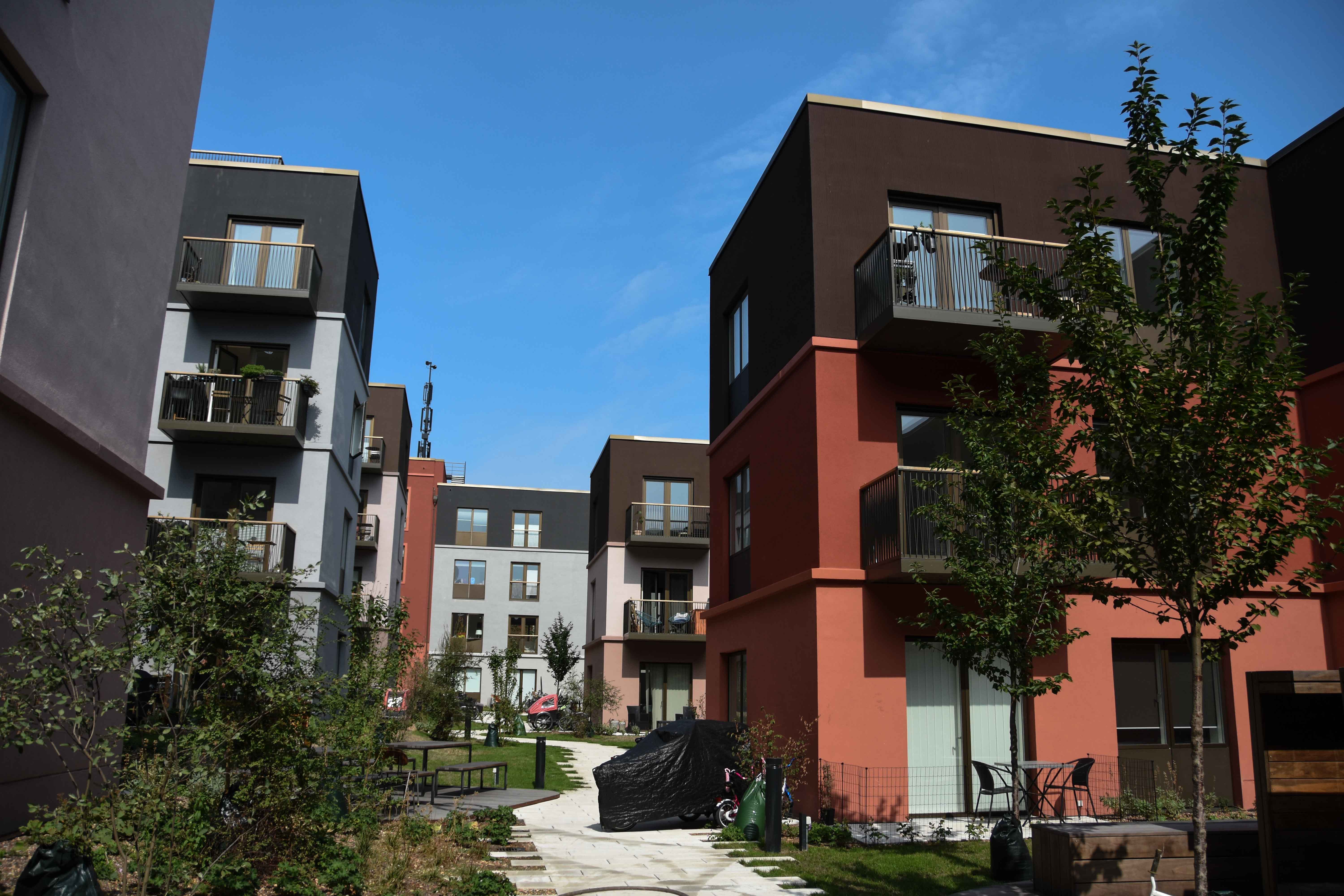 Ejendommen består af i alt 104 lejligheder, heraf 82 store lejligheder i en karrébebyggelse bestående af ni klassiske byhuse i forskellige farver, samt 22 toværelseslejligheder opført som gårdhavelejligheder i kompleksets gårdhave.