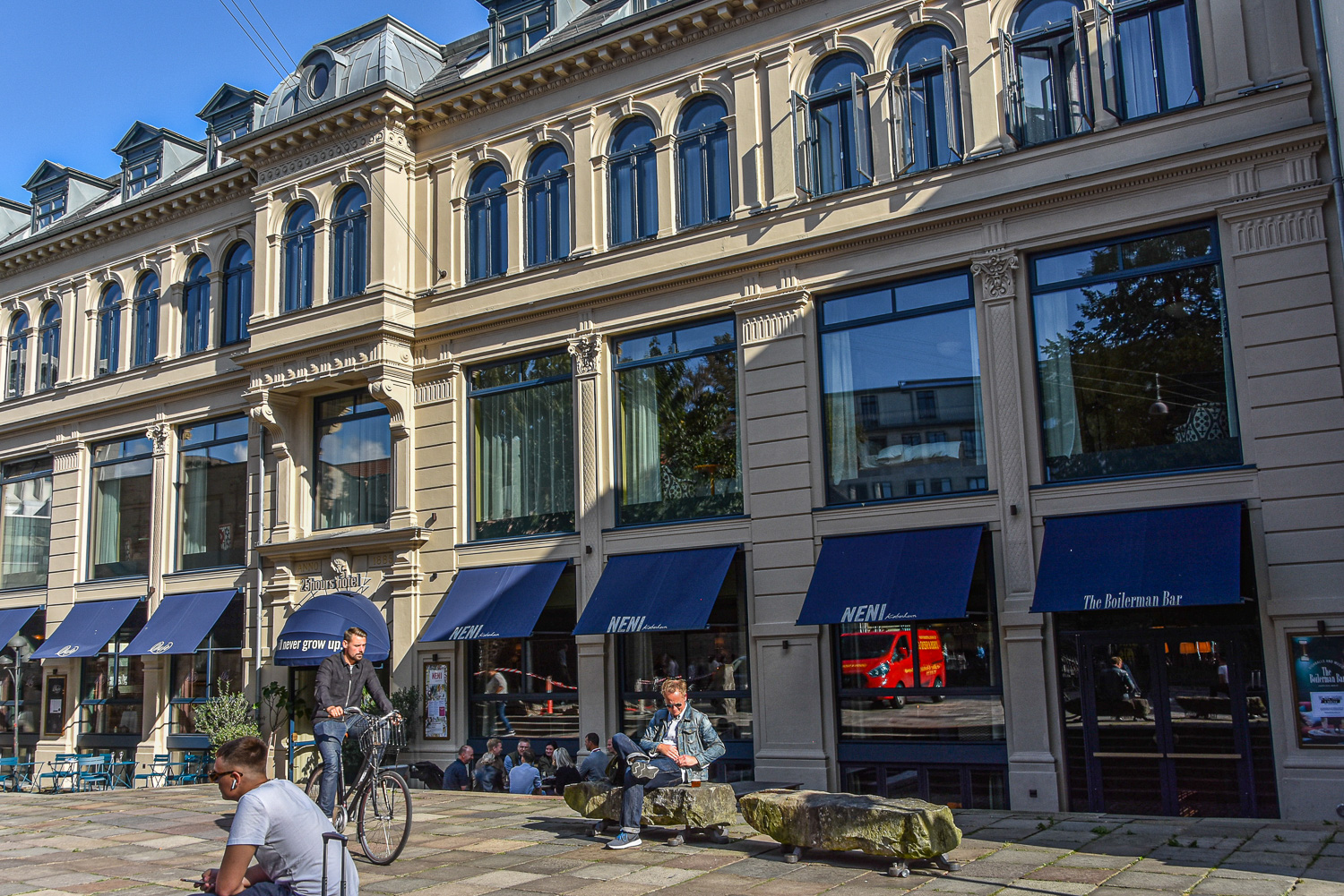 Historiske bygninger ombygget om til butikker, boliger og den internationale hotelkæde 25hours Hotels første hotel i Danmark.
