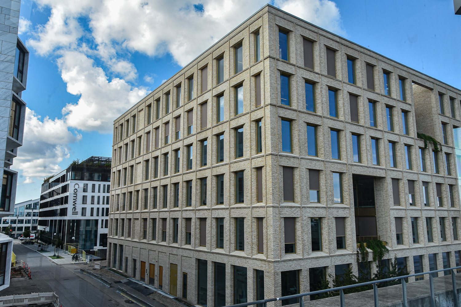 De 10.000 kvadratmeter består af kontorlokaler i fem etager samt et stort lobbyområde med butikker og caféer i stueetagen.
