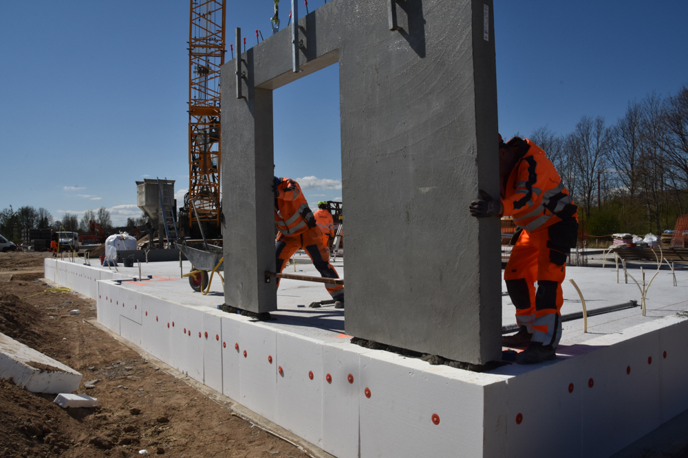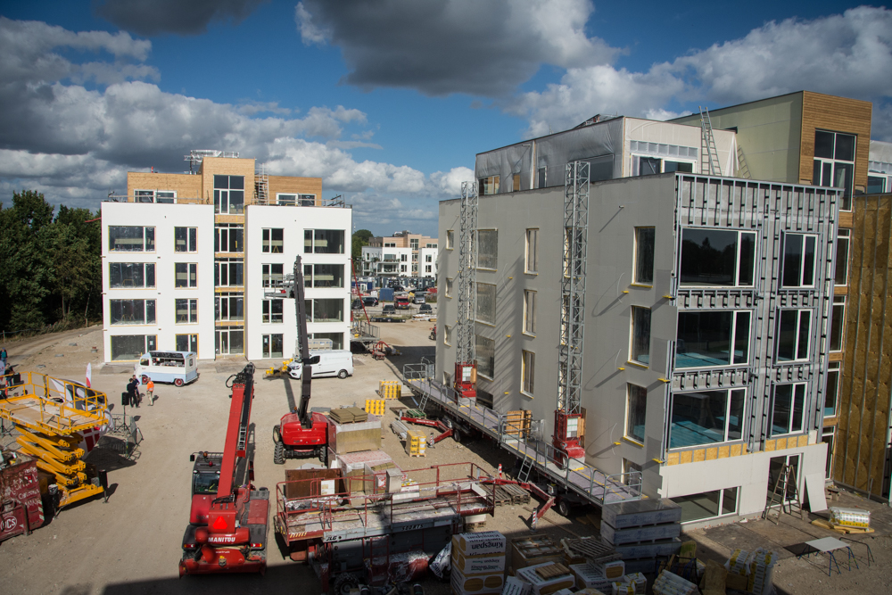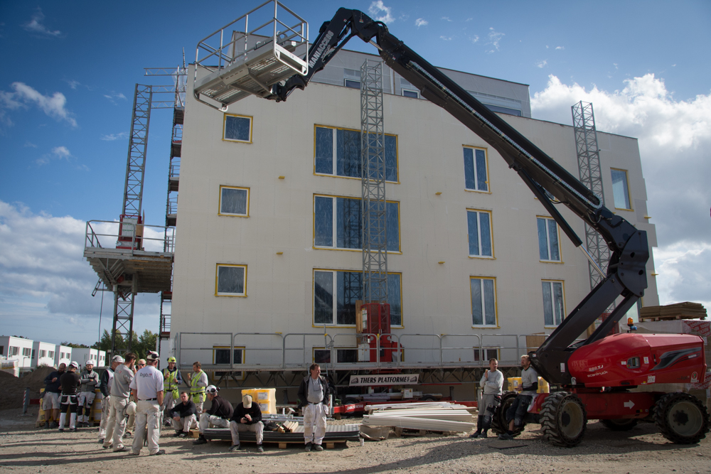 April 2020: Montage af råhuselementer på de sidste seks punkthuse