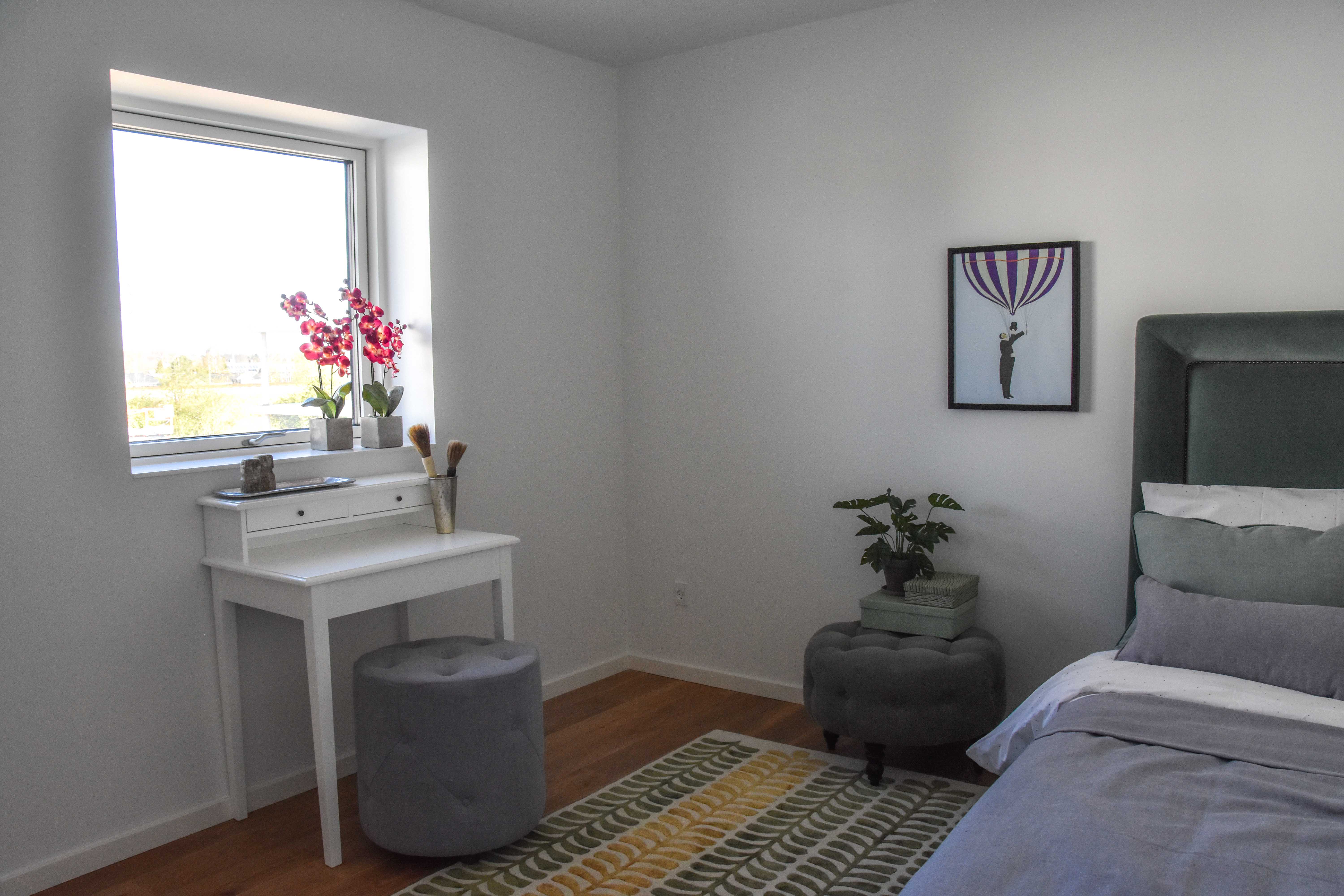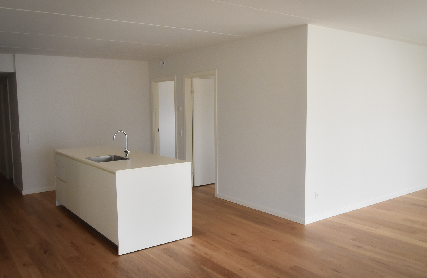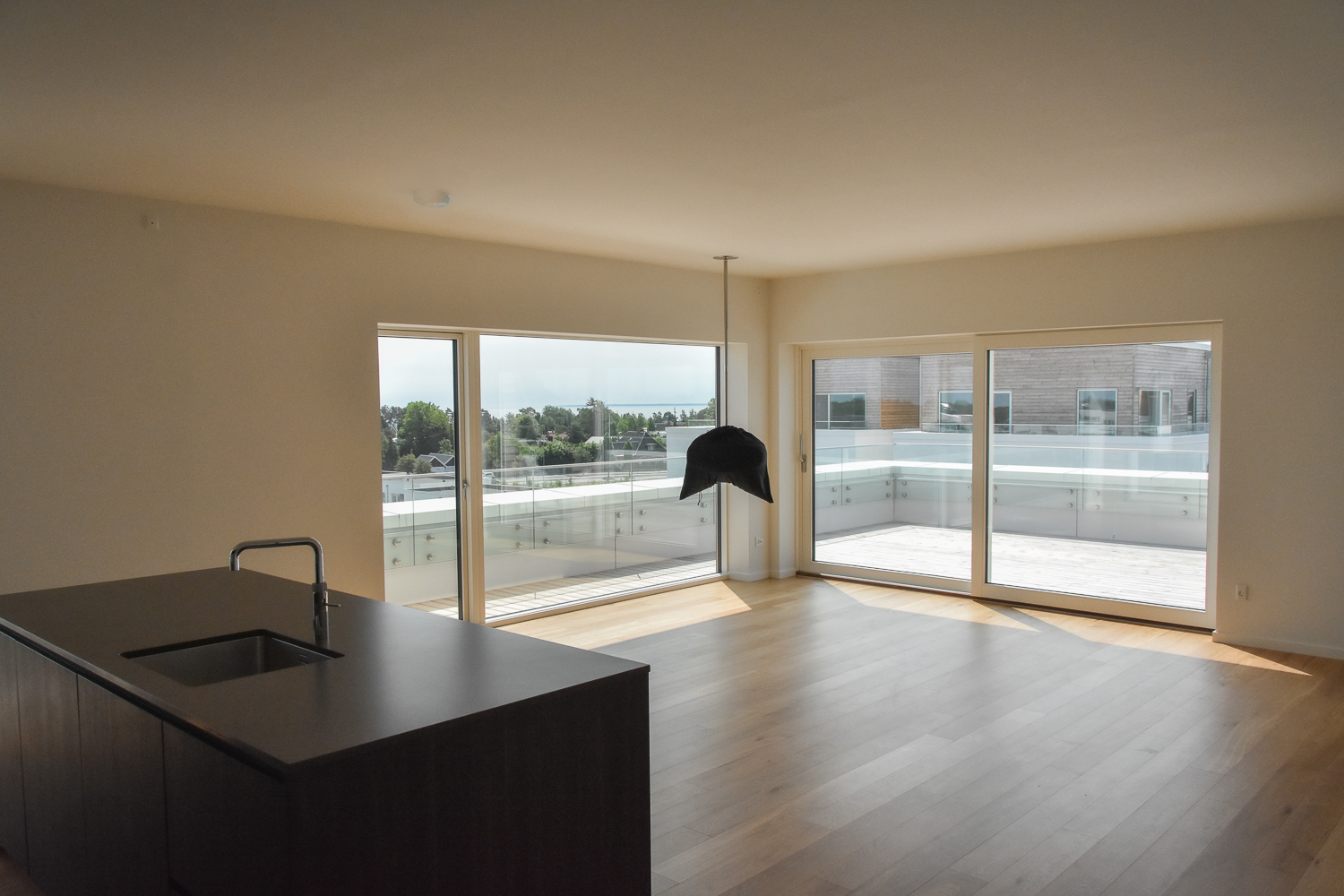 Ligesom enfamilieshusene ligger punkthusene placeret på en række boligøer, der hæver sig cirka en meter over terræn og skaber liv og variation i bebyggelsen. Alle lejligheder har en stor altan eller en terrasse. På toppen af hvert højhus er opført to penthouselejligheder. Lejlighederne er opført i lys og moderne stil af de bedste materialer.